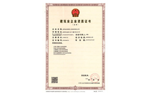 金鋅市政總承包一級(jí)資質(zhì)證書(shū)正本